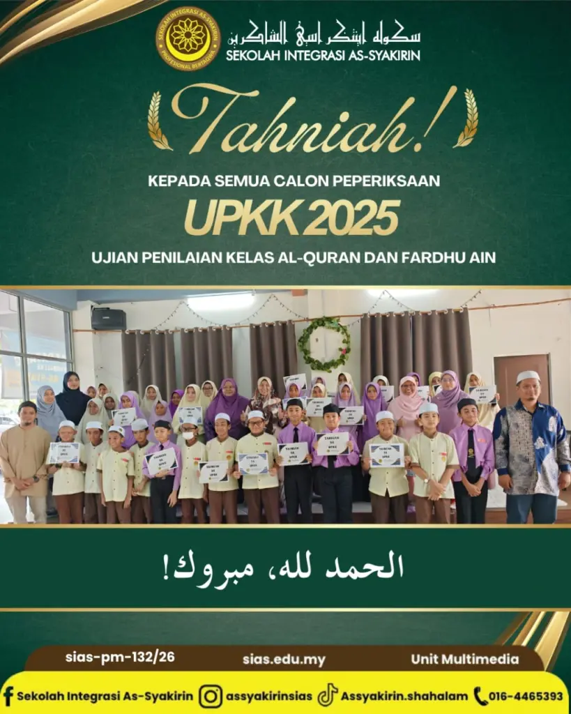 Selamat menduduki UJIAN PENILAIAN KELAS KAFA (UPKK) 2024 kepada semua murid Sekolah Integrasi As-Syakirin.